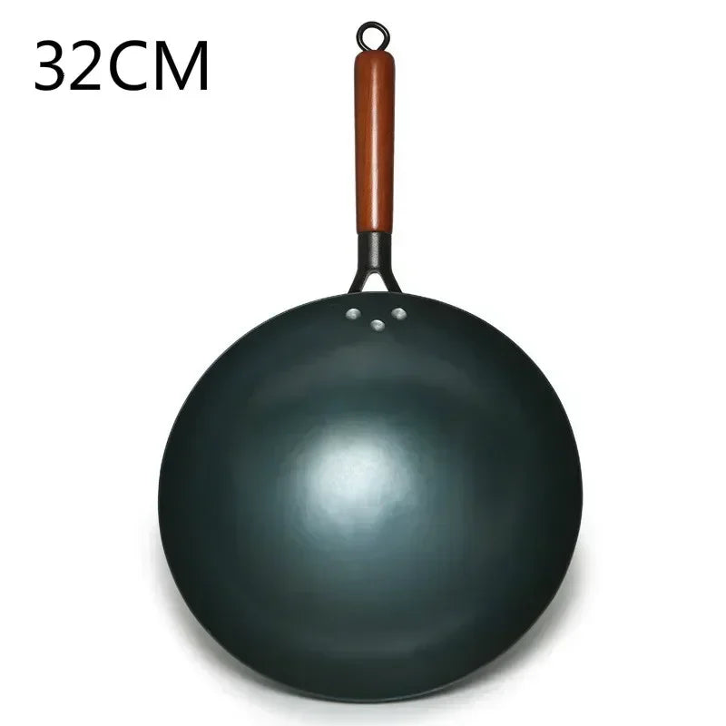 مقلاة ووك صينية تقليدية جديدة لعام 2024 مصنوعة يدويًا من الحديد ومقبض خشبي ومقلاة ووك غاز غير لاصقة وأدوات طهي المطبخ وعاء حديدي