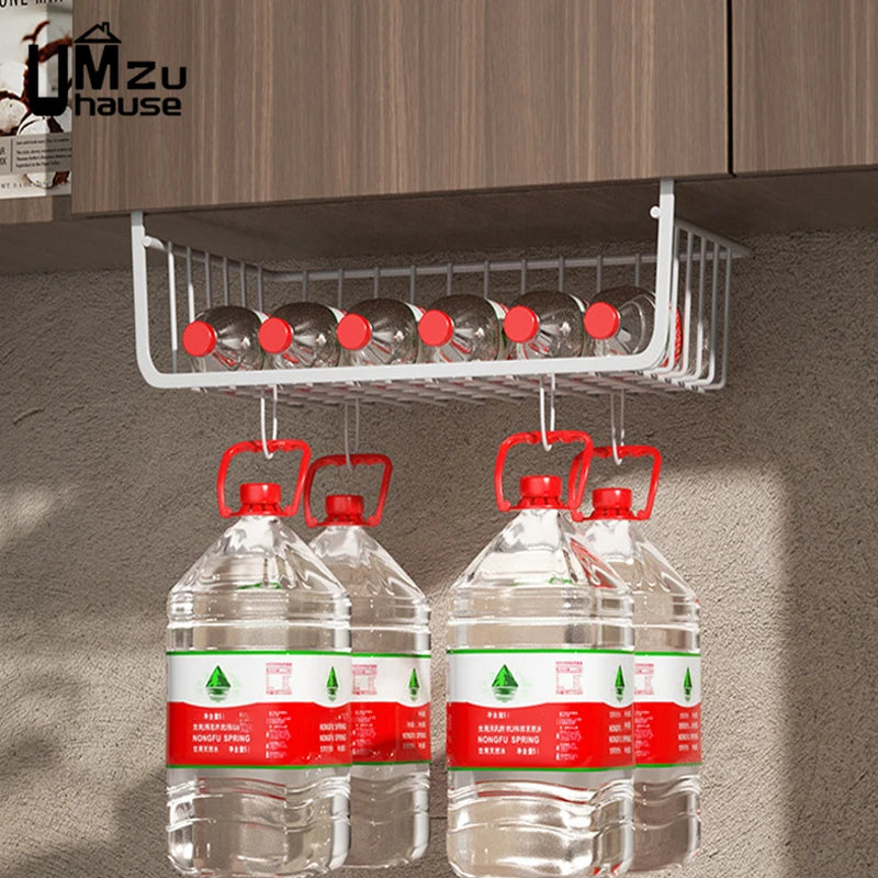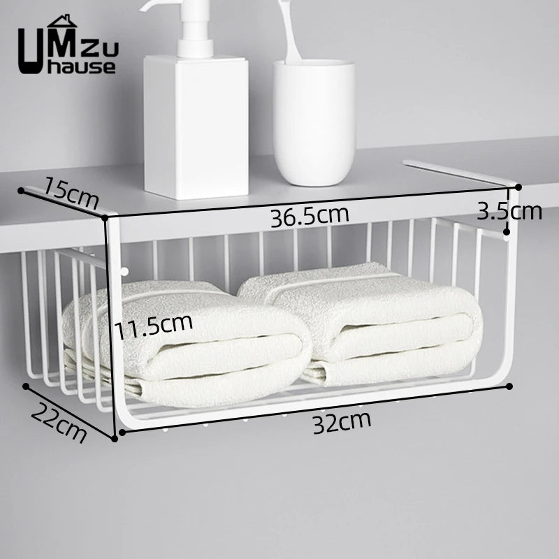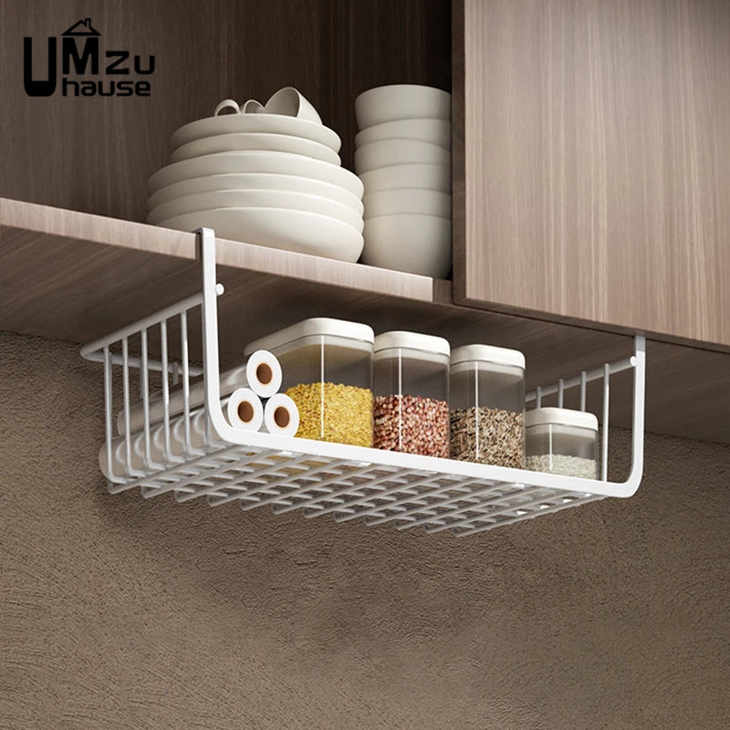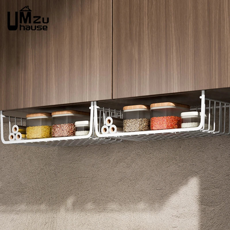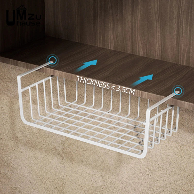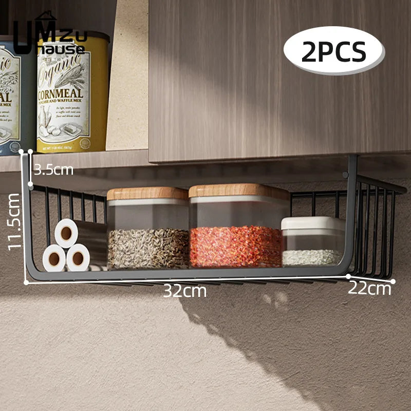 قطعتان من سلال التخزين المعلقة أسفل الخزانة بدون حفر، رف تخزين شبكي معدني، منظم للمطبخ والحمام، موفر قوي