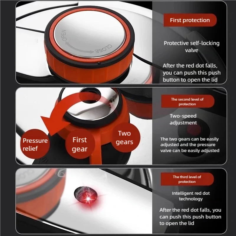 【الطهي تحت ضغط عالي】: يمكن لطنجرة الضغط المصنوعة من الفولاذ المقاوم للصدأ 304 طهي الطعام بسرعة