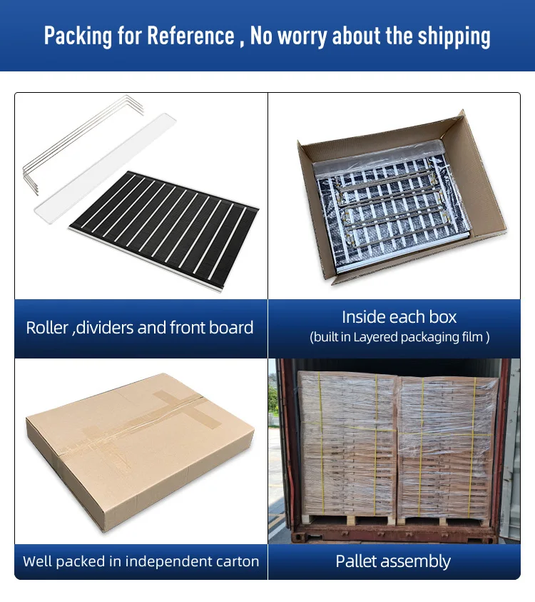 رف عرض المشروبات بالجاذبية مع خاصية التغذية التلقائية، وسلة حامل زجاجات المشروبات في الفريزر، ومبرد السوبر ماركت، ورف بكرة تغذية بالجاذبية