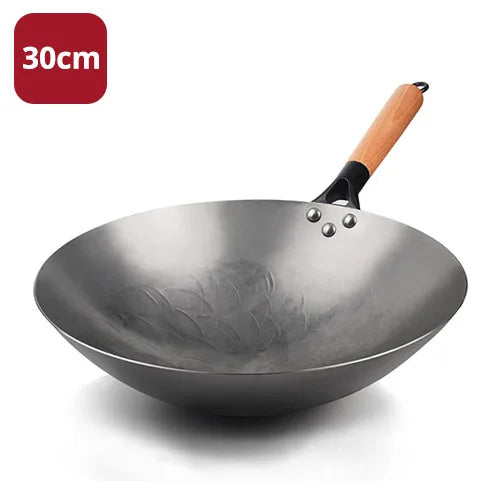أواني طهي صينية مصنوعة يدويًا من الحديد غير مطلية ومقلاة ووك حديدية متينة وأواني طهي على شكل غاز