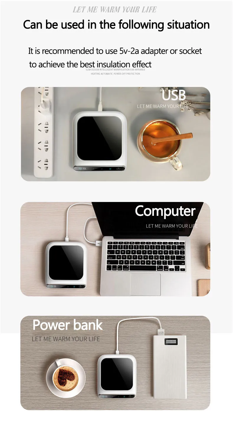 سخان أكواب كهربائي 5 فولت مزود بشاحن USB لتدفئة الأكواب وسخان أكواب الشاي وملحقات المكتب للحفاظ على دفء المشروبات