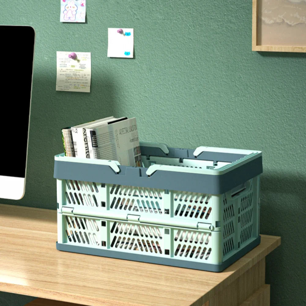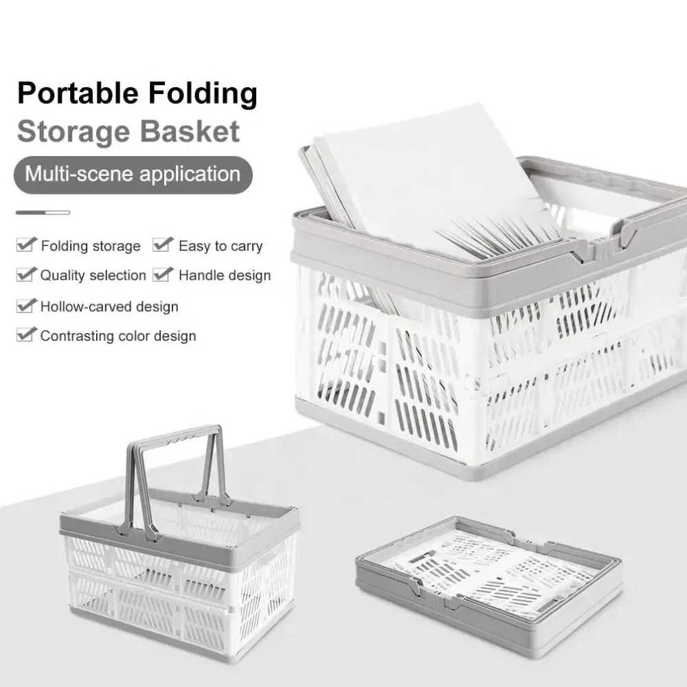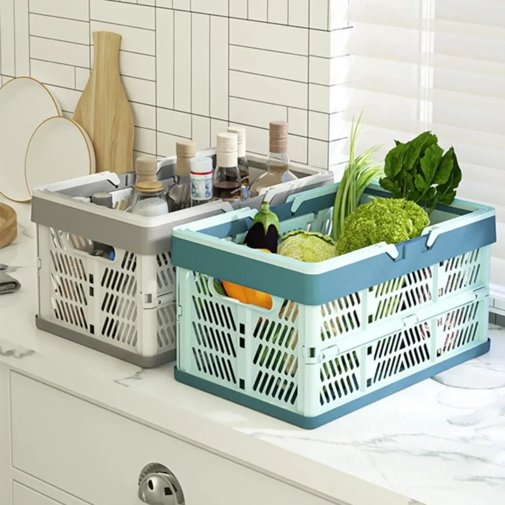 سلة تخزين قابلة للطي، سلة تخزين كبيرة قابلة للطي مع مقبض للمطبخ وغرفة المعيشة وتنظيم سطح المكتب