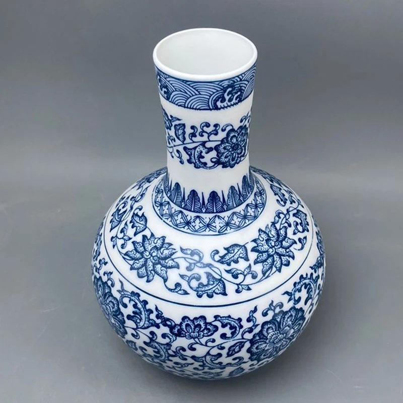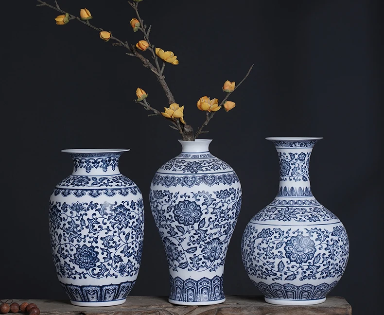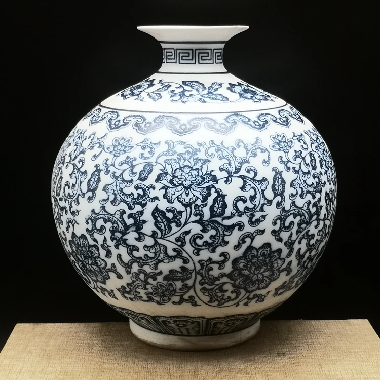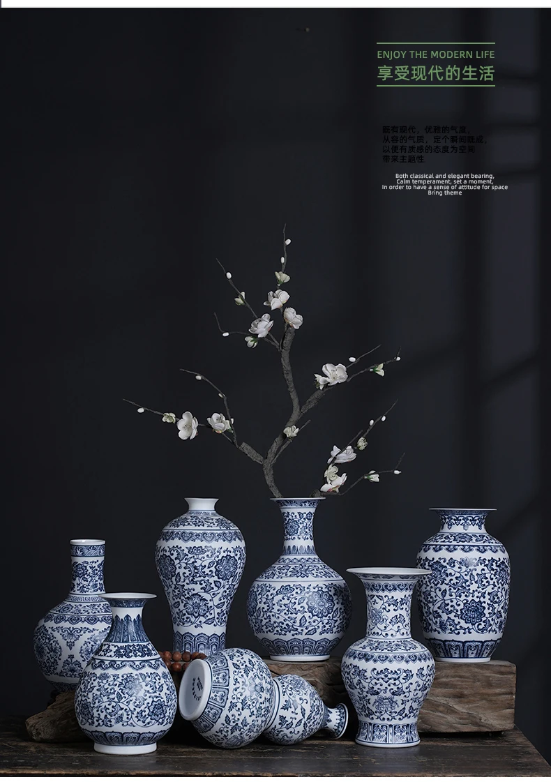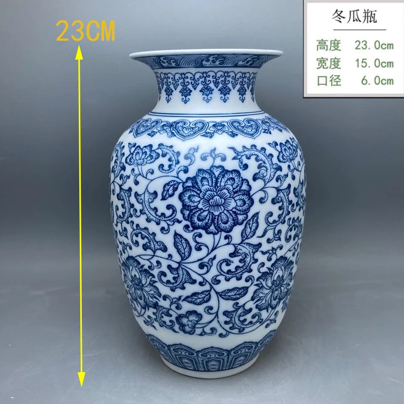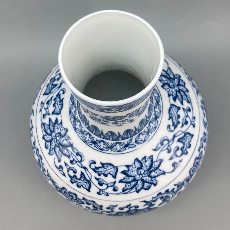 جينغدتشن - مزهريات زهور من البورسلين الأزرق والأبيض، مزهرية سيراميكية، تصميم لوتس متشابك، ديكور منزلي، جسم زجاجة غير لامع