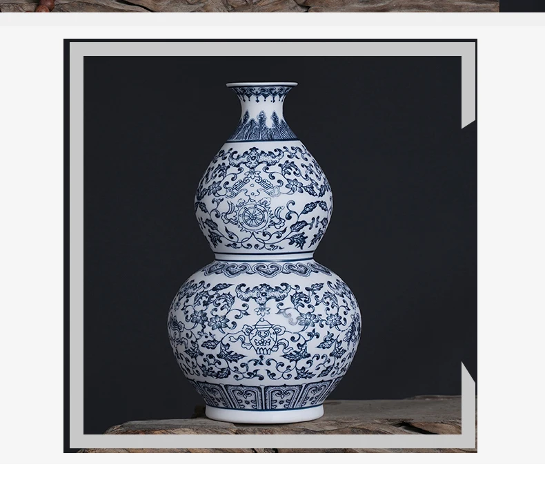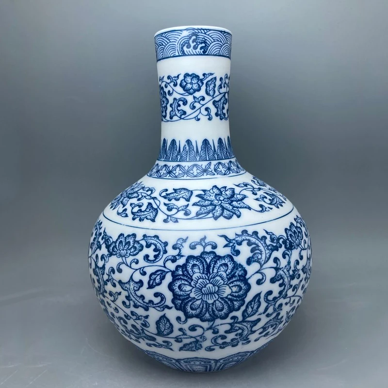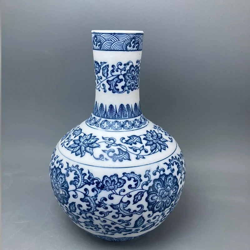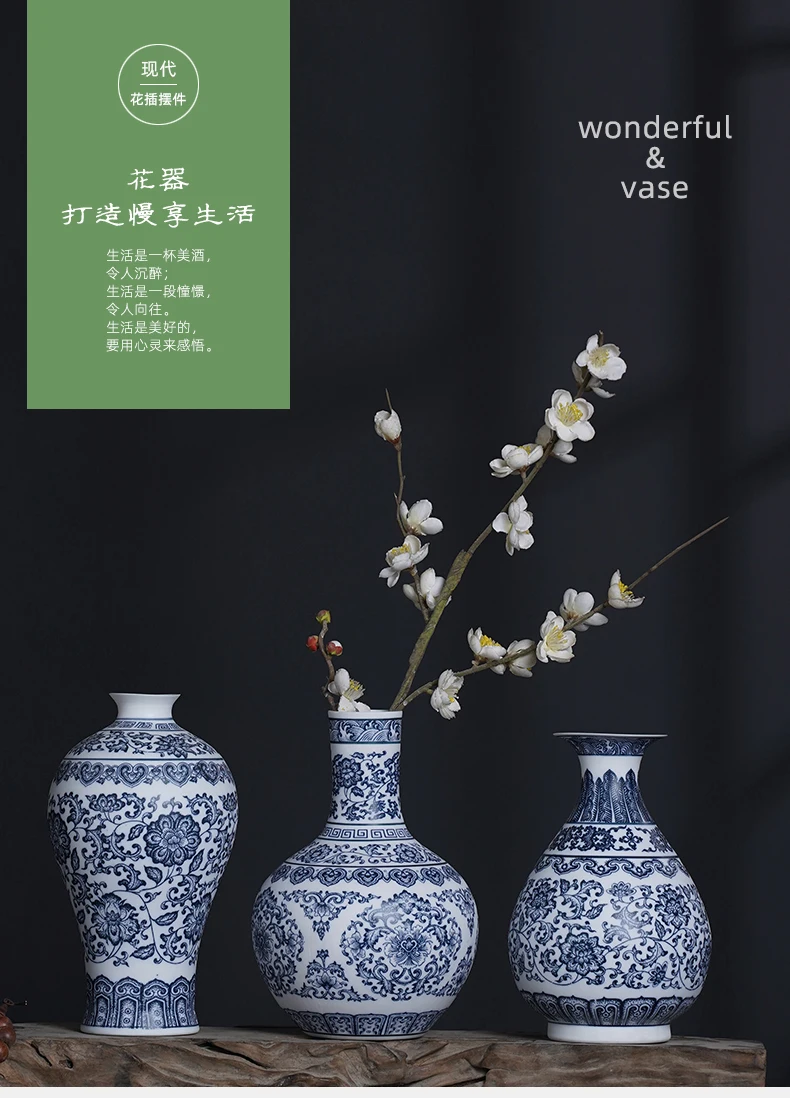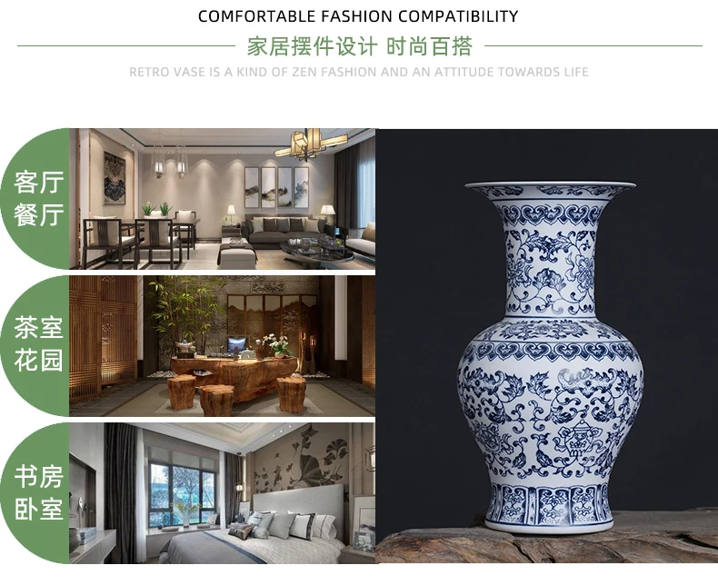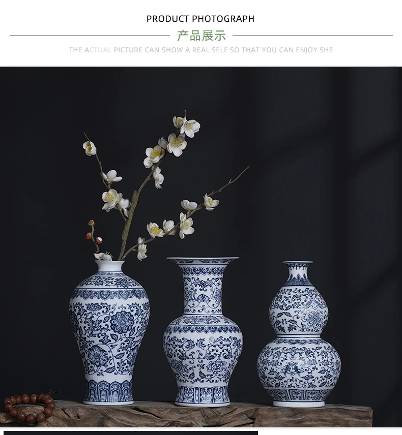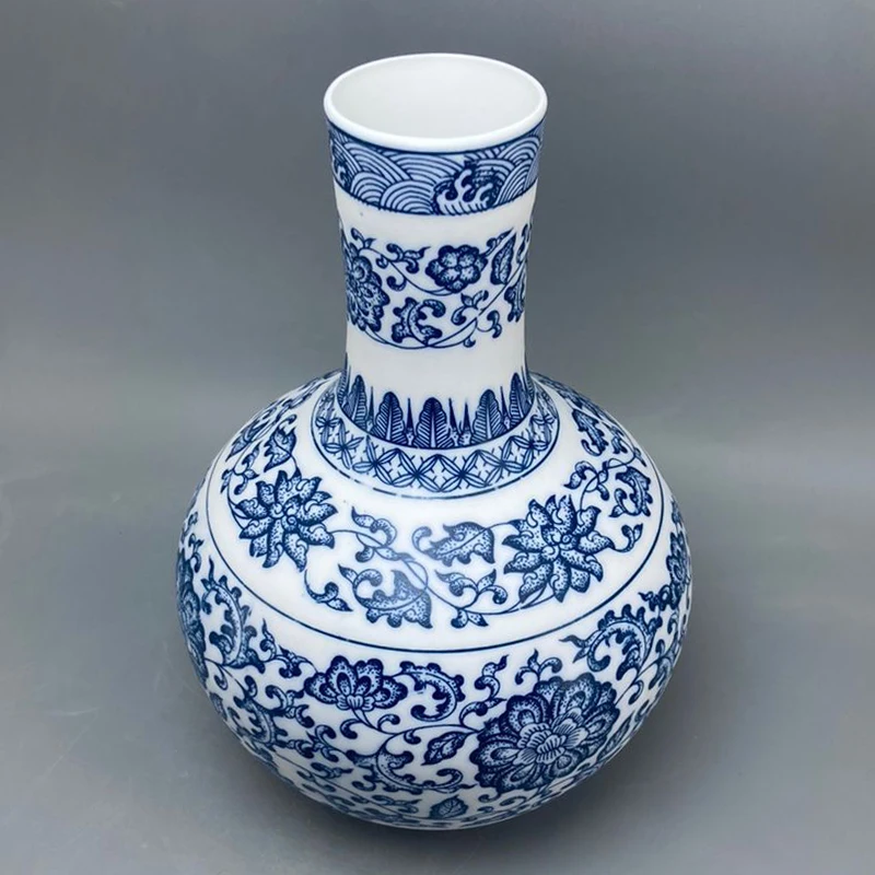 جينغدتشن - مزهريات زهور من البورسلين الأزرق والأبيض، مزهرية سيراميكية، تصميم لوتس متشابك، ديكور منزلي، جسم زجاجة غير لامع