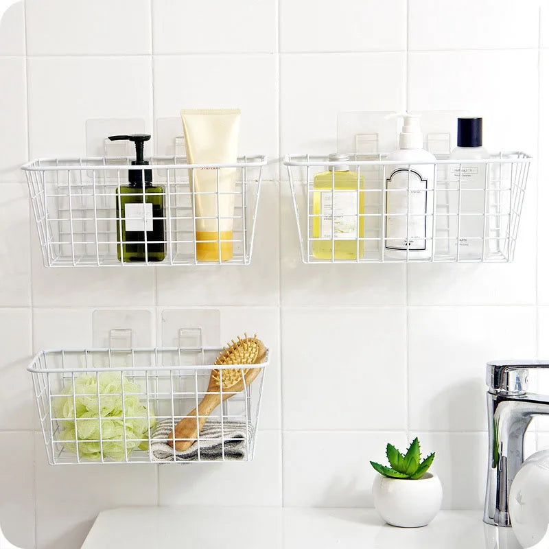 رف تخزين المطبخ، توابل الحمام، سلة تخزين خالية من الثقوب، مكتب، غرفة نوم، رف حائط الحمام، سلة معلقة