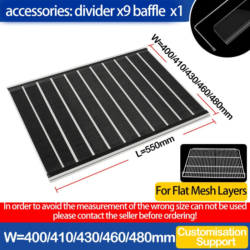 ملاحظة: يُرجى التحقق من صورة طراز SKU بعناية! يتوفر لدينا نوعان من الثلاجات، أحدهما للشبكة العالية، ويأتي مع شرائح فقط، بدون ملحقات! والآخر للشبكة المسطحة، ويأتي مع ملحقات (سلك وحواجز)!