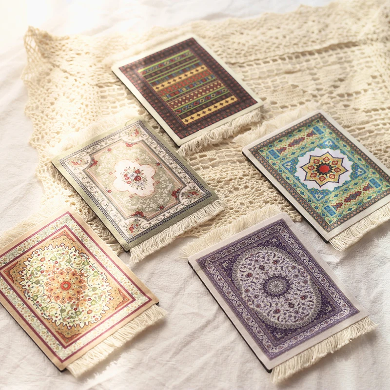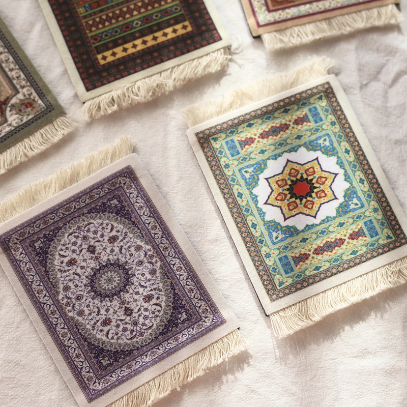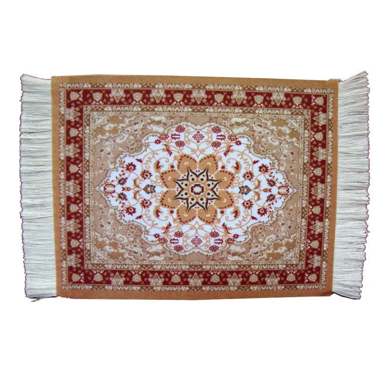 سجادة فارسية صغيرة منسوجة على الطراز القديم، وسادة ماوس بنمط كوب للكمبيوتر المحمول مع هامش، ديكور طاولة المكتب المنزلي، حرفة يدوية