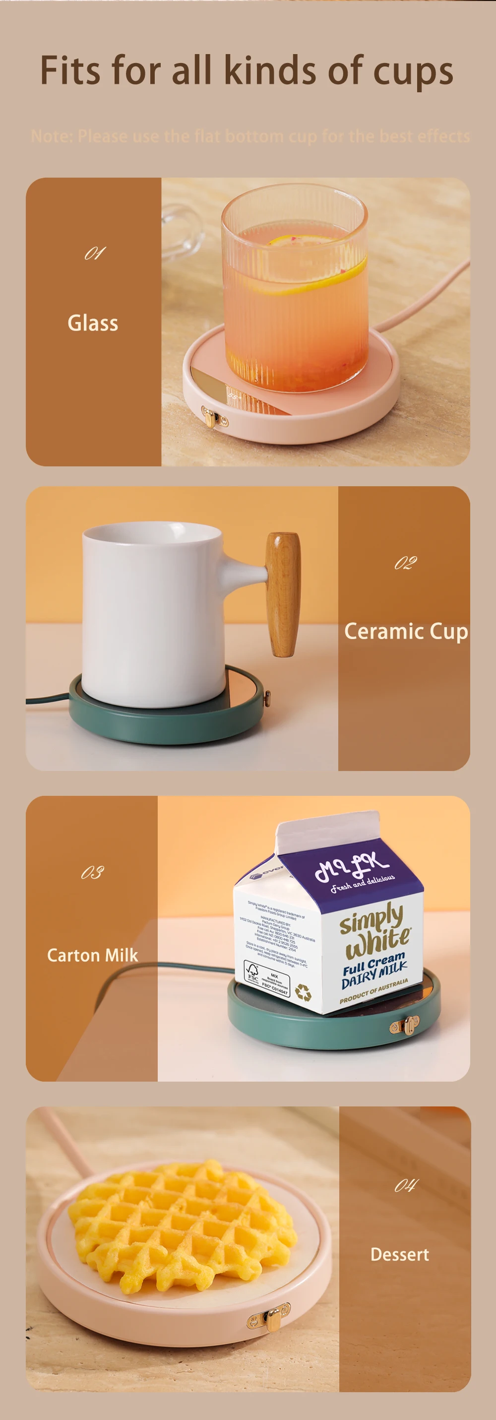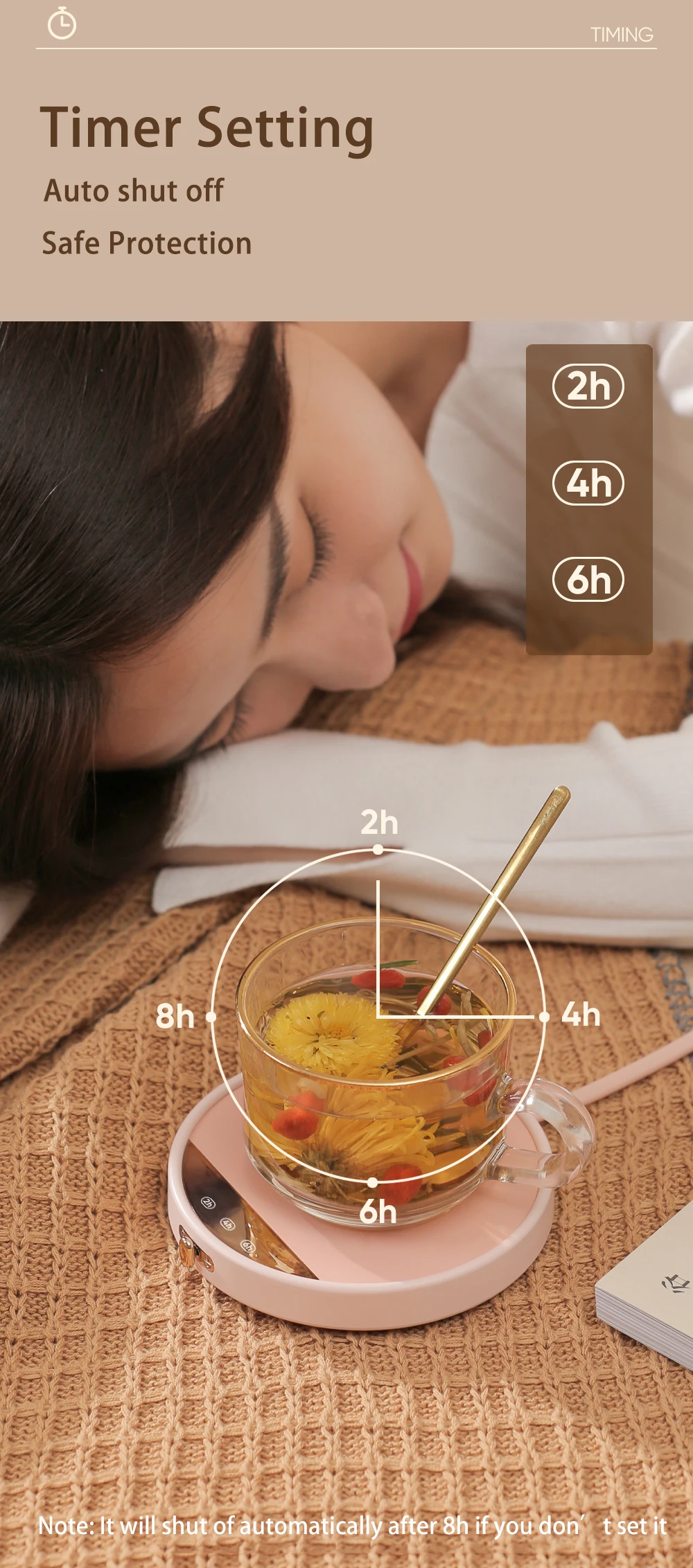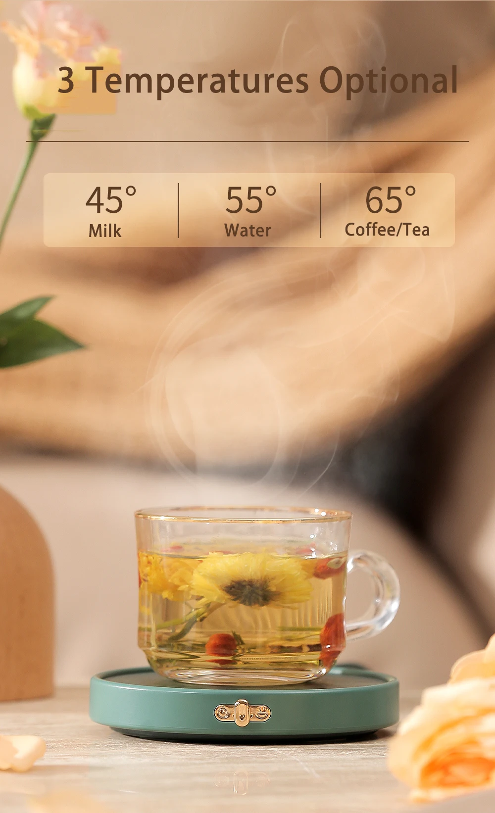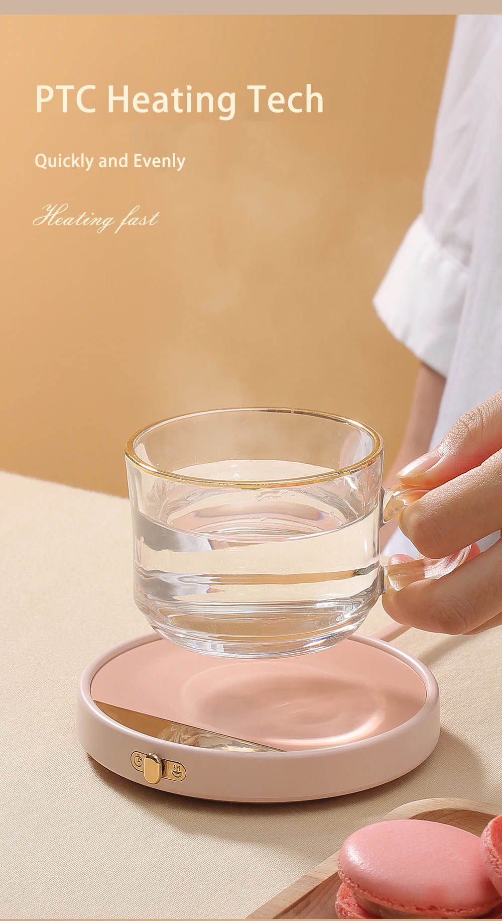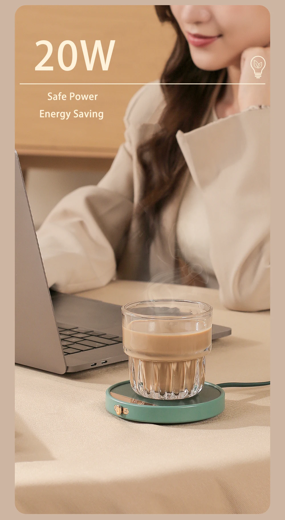 - يحافظ سخان الكوب بشكل أساسي على القهوة والماء والحليب والشاي والمشروبات الأخرى في درجة الحرارة المثالية لفترة طويلة، أينما ومتى يمكنك الاستمتاع بمشروباتك المفضلة في درجة الحرارة المثالية ولكن ليست ساخنة جدًا.