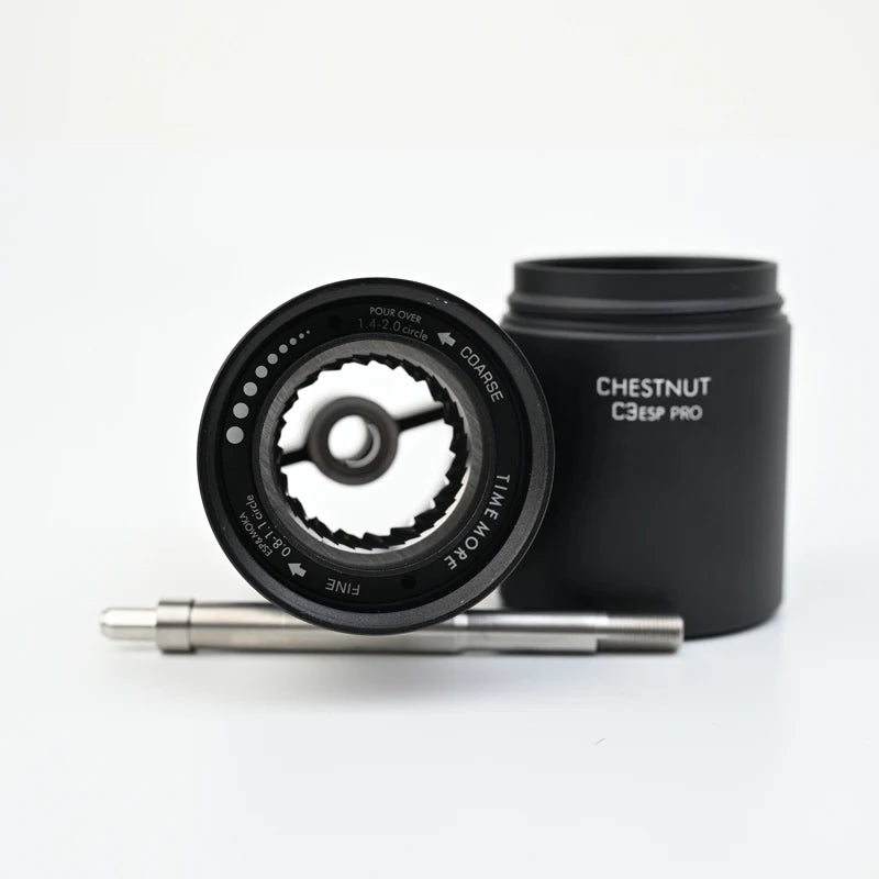 ما هي مطحنة القهوة اليدوية C3ESP Pro؟ تصميم خاص للإسبريسو؟ مزودة بشفرات S2C660 الحاصلة على براءة اختراع من الفولاذ المقاوم للصدأ، مما يضمن دقة وكفاءة أعلى. توفر مطحنة القهوة اليدوية C3ESP Pro ضبطًا دقيقًا للطحن، مع تعديل طفيف بمقدار 0.0233 مم لكل نقرة، مما يتيح لك الوصول بسهولة إلى درجة الخشونة المثالية التي تناسب تفضيلاتك من الناعم إلى الخشن. من مكبس القهوة الفرنسي إلى قهوة الإسبريسو، تايم مور تُلبي جميع احتياجاتك.