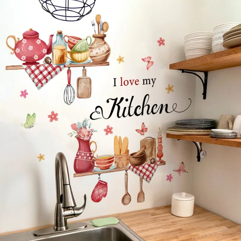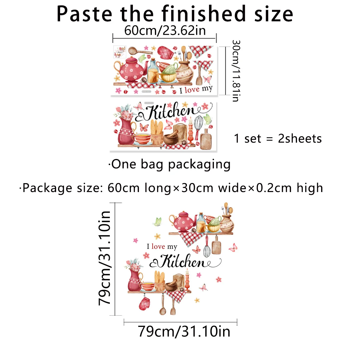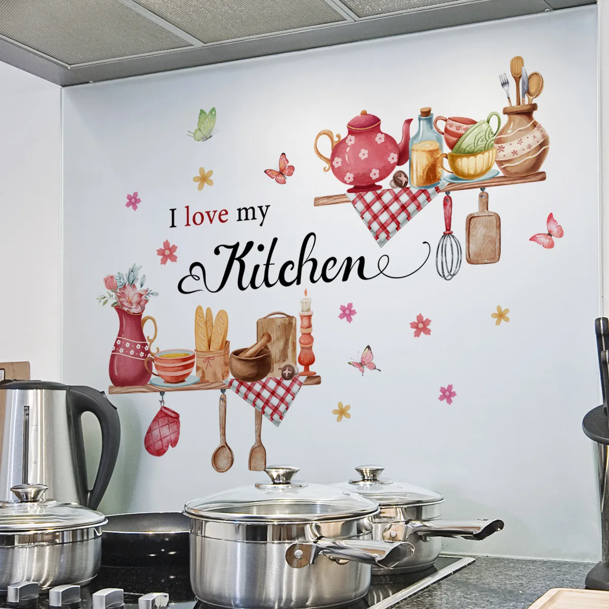ملصقات حائط قابلة للإزالة ومقاومة للماء وملصقات حائط مصنوعة يدويًا من مادة البولي فينيل كلوريد لتزيين غرفة الطعام وديكور المطبخ